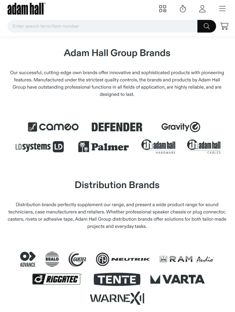 Adam Hall Group is a globally recognized manufacturer and distributor of high-quality event technology solutions, headquartered in Germany. The company provides an extensive and diverse portfolio of professional audio, lighting, stage, and hardware equipment through its well-established and respected brands such as LD Systems, Cameo, Gravity, and Palmer. With decades of experience and a strong commitment to innovation, Adam Hall continually develops cutting-edge products designed to meet the evolving needs of professionals in the live entertainment, broadcast, and AV installation markets. Supported by a global network of partners and distributors, Adam Hall Group has built a solid reputation for reliability, performance, and customer-focused service across more than 100 countries worldwide.