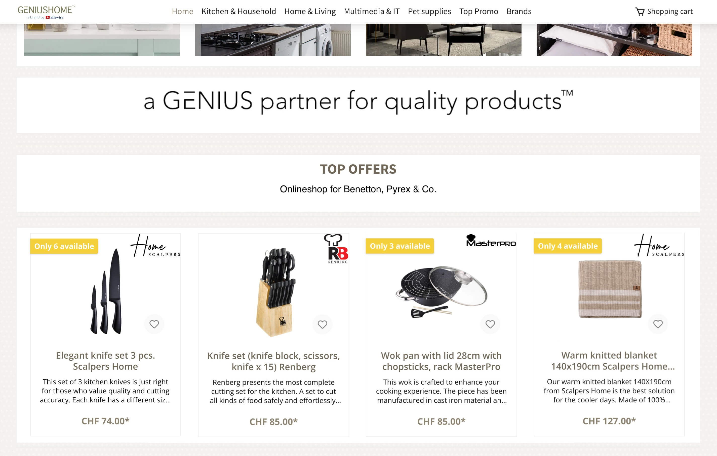 Geniushome is a Swiss retail group operating across B2B and B2C e-commerce channels. The company manages over 100,000 SKUs sourced from major European manufacturers, as well as proprietary brands produced in China. To strengthen market presence and brand visibility, Geniushome recently relaunched its online store as a multi-store platform on Shopware, designed to showcase all proprietary brands and products efficiently.