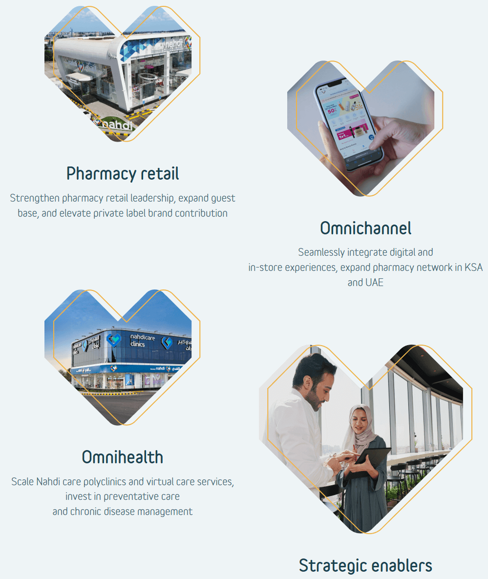 L’azienda impiega oltre 10.000 persone e offre un’ampia gamma di prodotti, tra cui farmaci, articoli per la salute e il benessere, prodotti di bellezza e dispositivi medici. Gestisce inoltre le cliniche NahdiCare, piattaforme di telemedicina e servizi di assistenza sanitaria a domicilio. Nel 2022, Nahdi è stata quotata alla Borsa dell’Arabia Saudita (Tadawul).