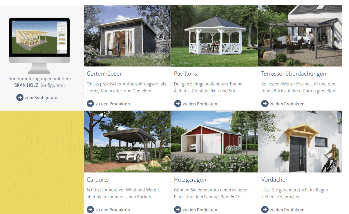 SKAN HOLZ Europe GmbH è un produttore tedesco di strutture prefabbricate in legno, tra cui casette da giardino, tettoie per auto, padiglioni e altri edifici per esterni.